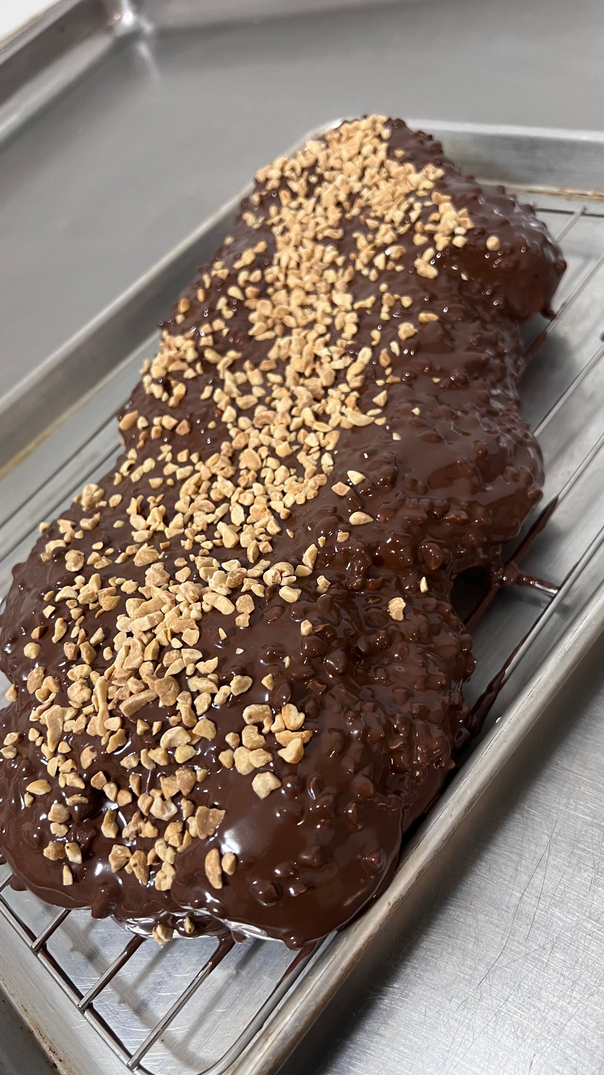 Scorched peanut, salted caramel filling, covered with roasted peanut chocolate